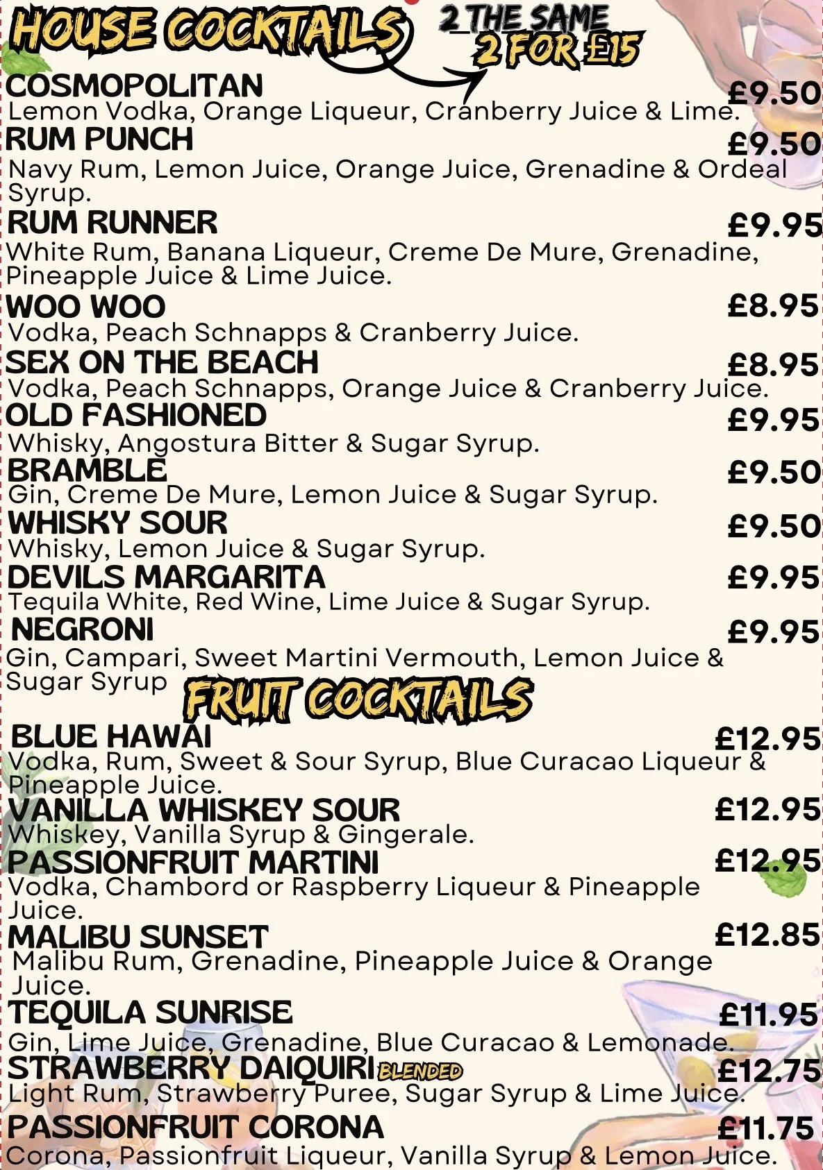 🔥 House cocktails: 2 the same for just £15! 🔥